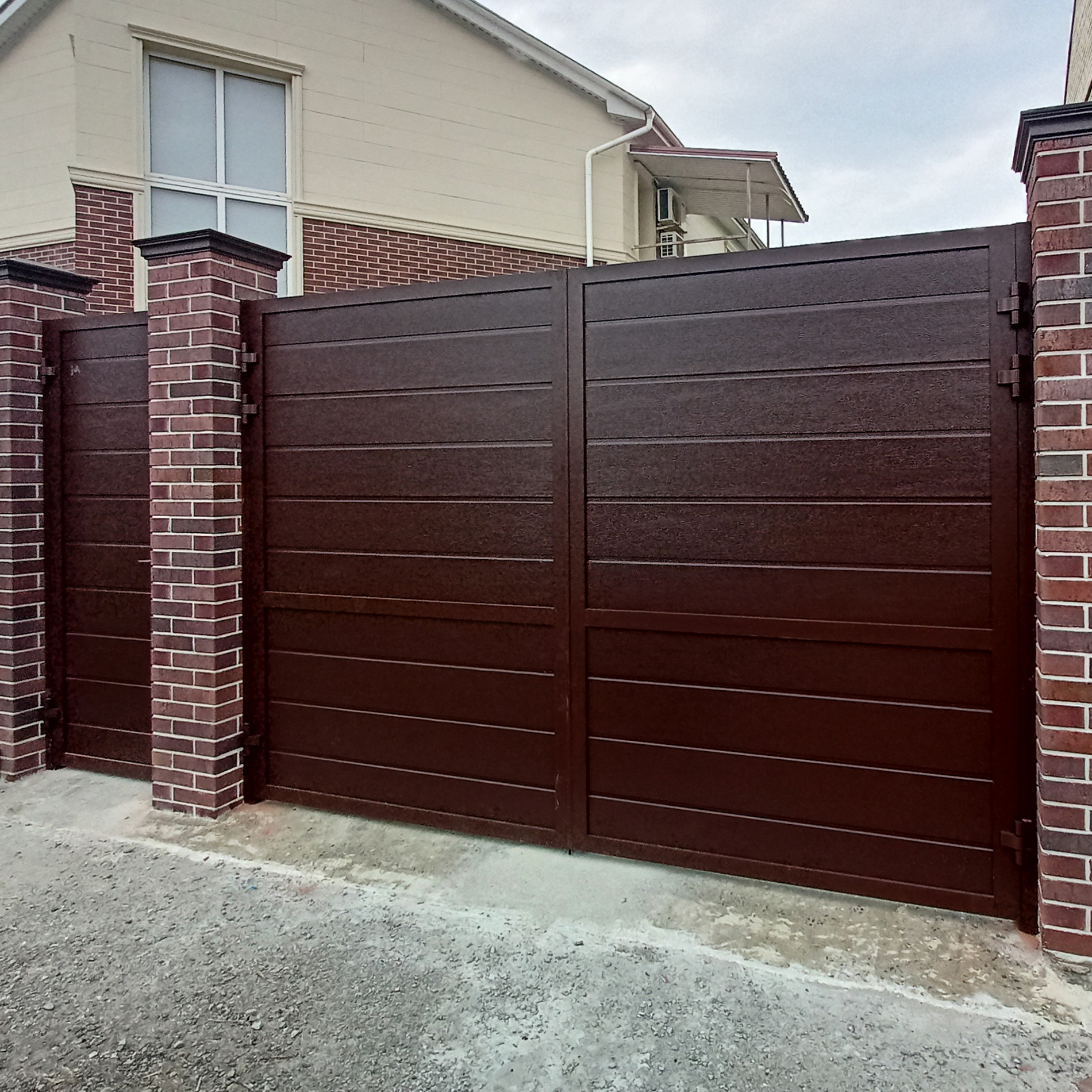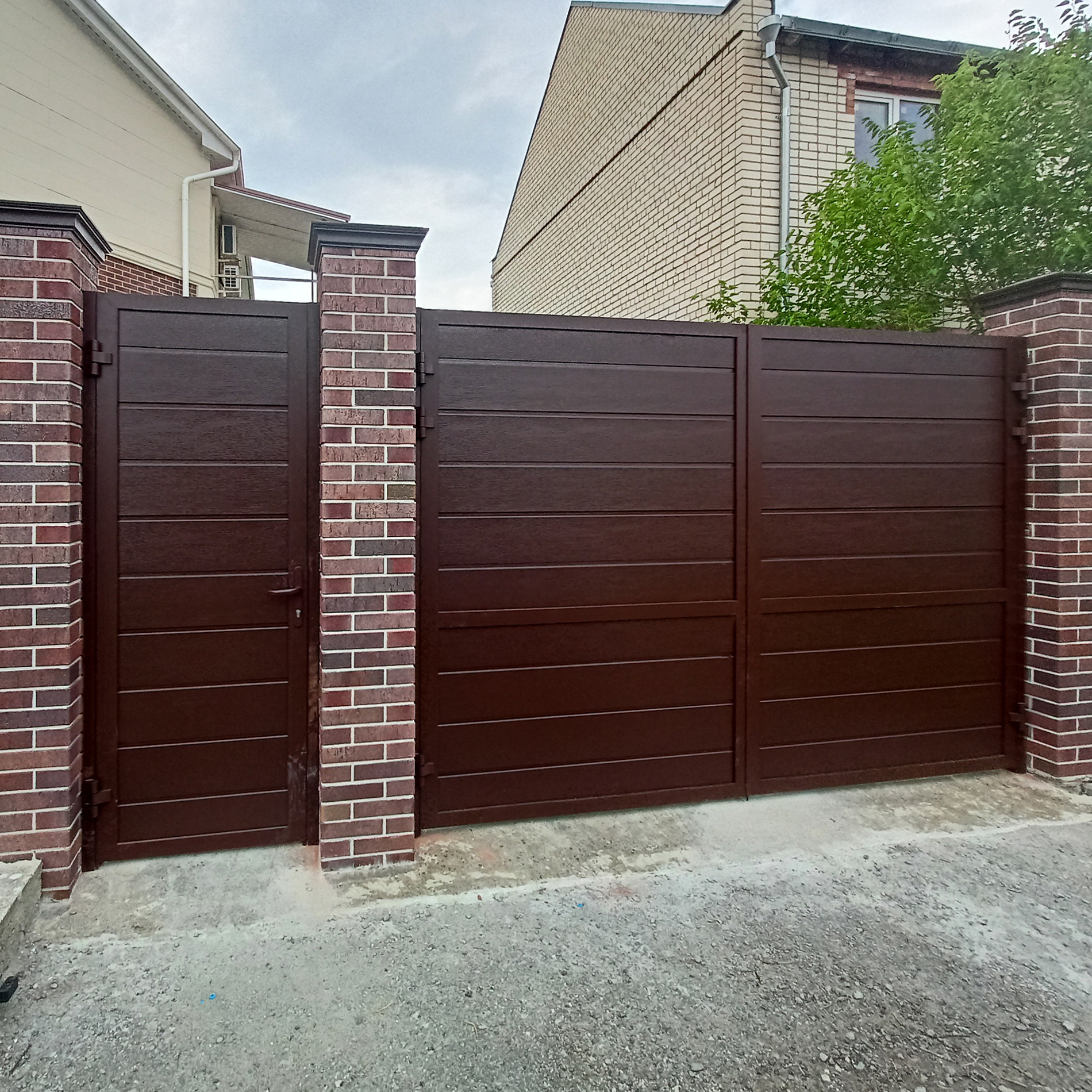 Да, в случае, если на вашем участке недостаточно места для установки отдельной калитки, ее можно встроить в сами ворота.