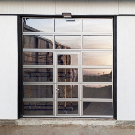 Если вам необходим высокий уровень солнцезащиты на объекте, вы можете заказать панорамные ворота с тонированными стеклами в 2 оттенках на выбор: сером и белом.